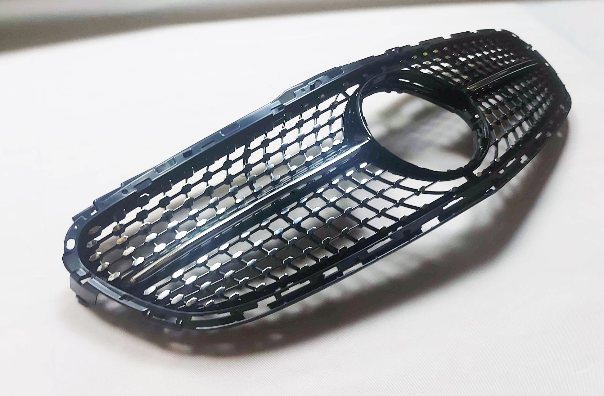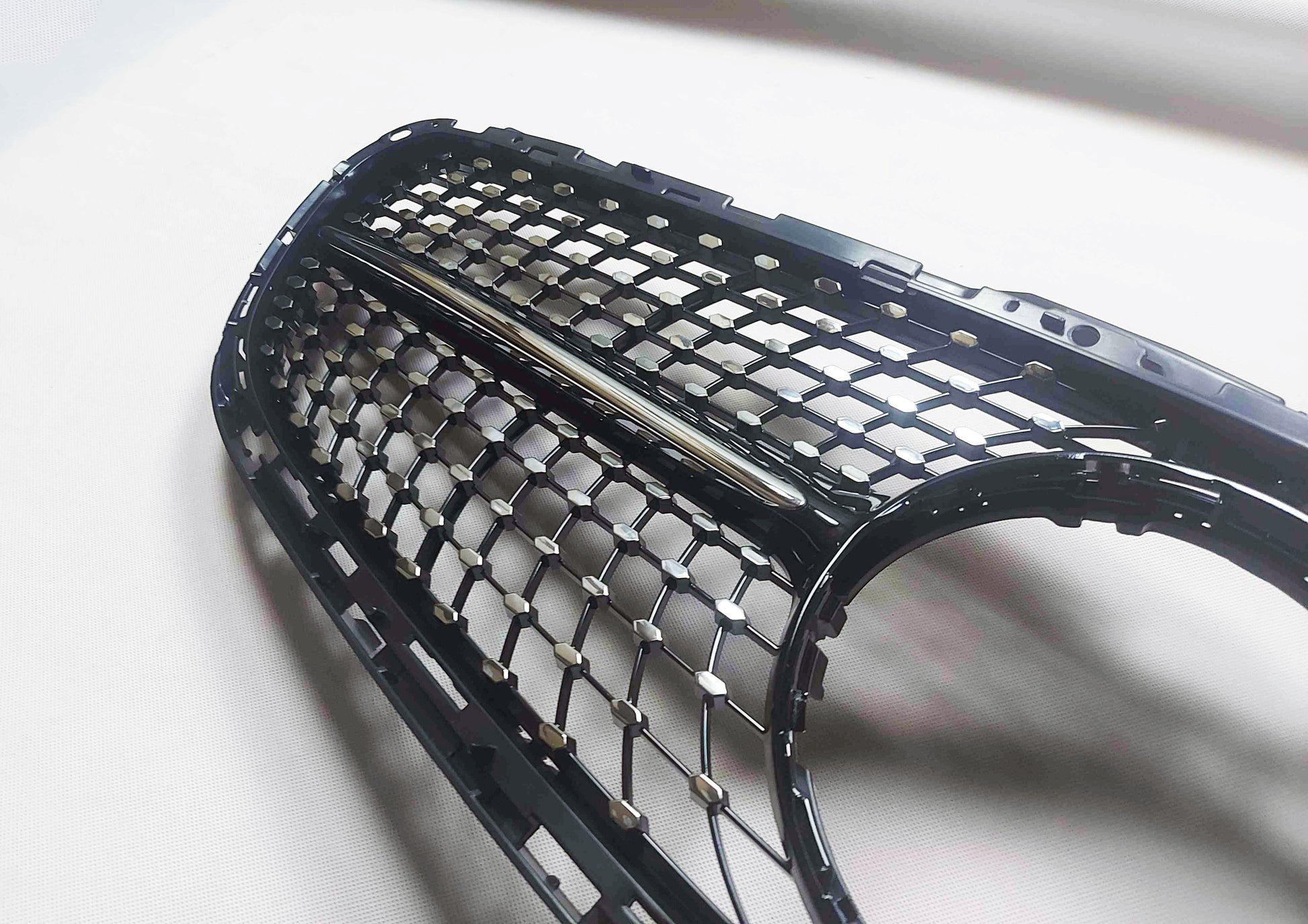 Aftermarket grilles manufactured at OEM standard, with top quality materials, precise design and light weight. A very cost-effective way to give your car a fresh lift to stand out on the road. This grille update is in line with AMG's newest design language: single horizontal fin with diamonds in chrome, it will subtle transform your car to provide a unique look without being crude.
