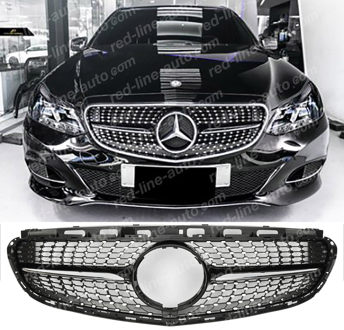 Facelift Mercedes W212 E-Class Saloon S212 Estate Black AMG Front Grille, Chrome Diamond