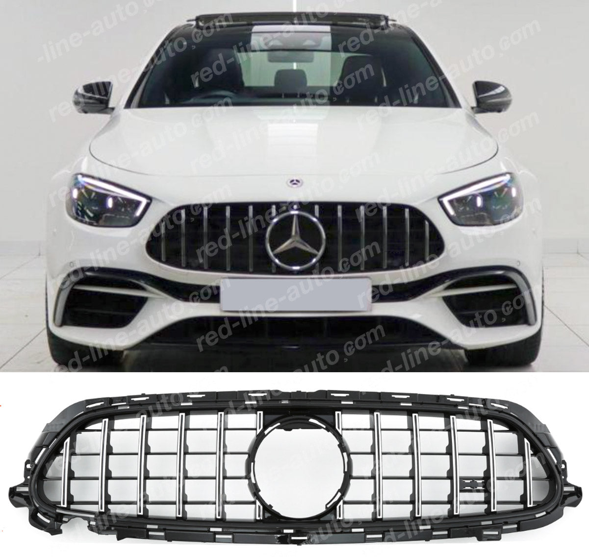 Facelift Mercedes W213 E-Class Saloon S213 Estate AMG Black GT Front Grille, Chrome Panamericana