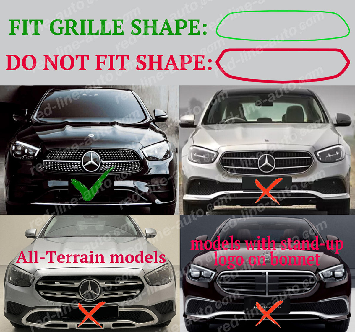 - Compatible models: For 2020-2024 Facelift Mercedes-Benz W213 E-Class saloon and S213 estate; Compatible with or without front camera and Distronic; NOT for base models with round bottom shaped grille; NOT for E63