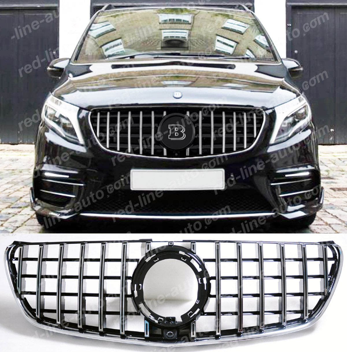 2020+ Facelift Mercedes W447 V-Class MPV Viano Black AMG GT Front Grille, Chrome Panamericana