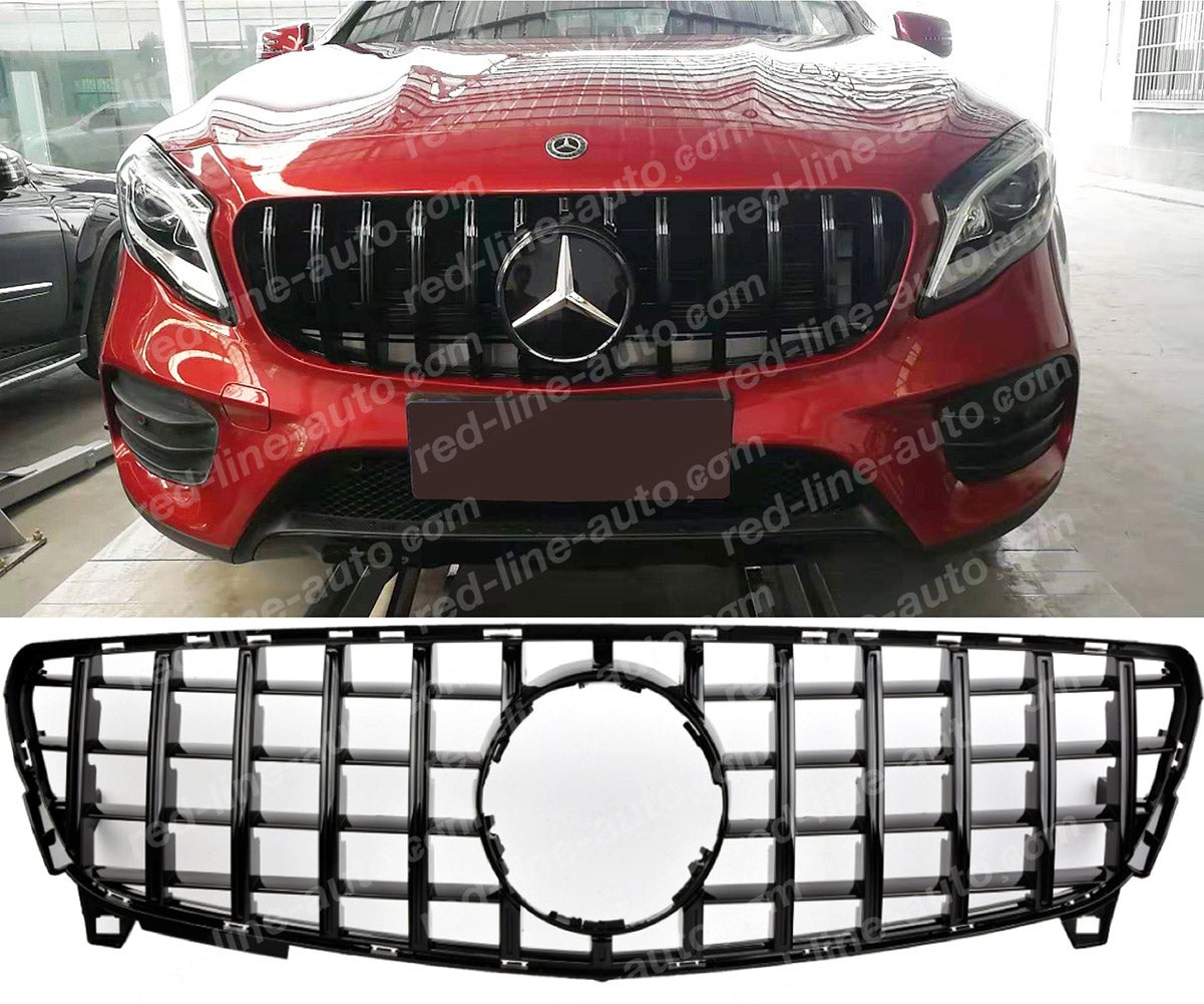 Facelift Mercedes X156 GLA SUV AMG GT Grille, Full Gloss Black Panamericana Slats GLA200 GLA180