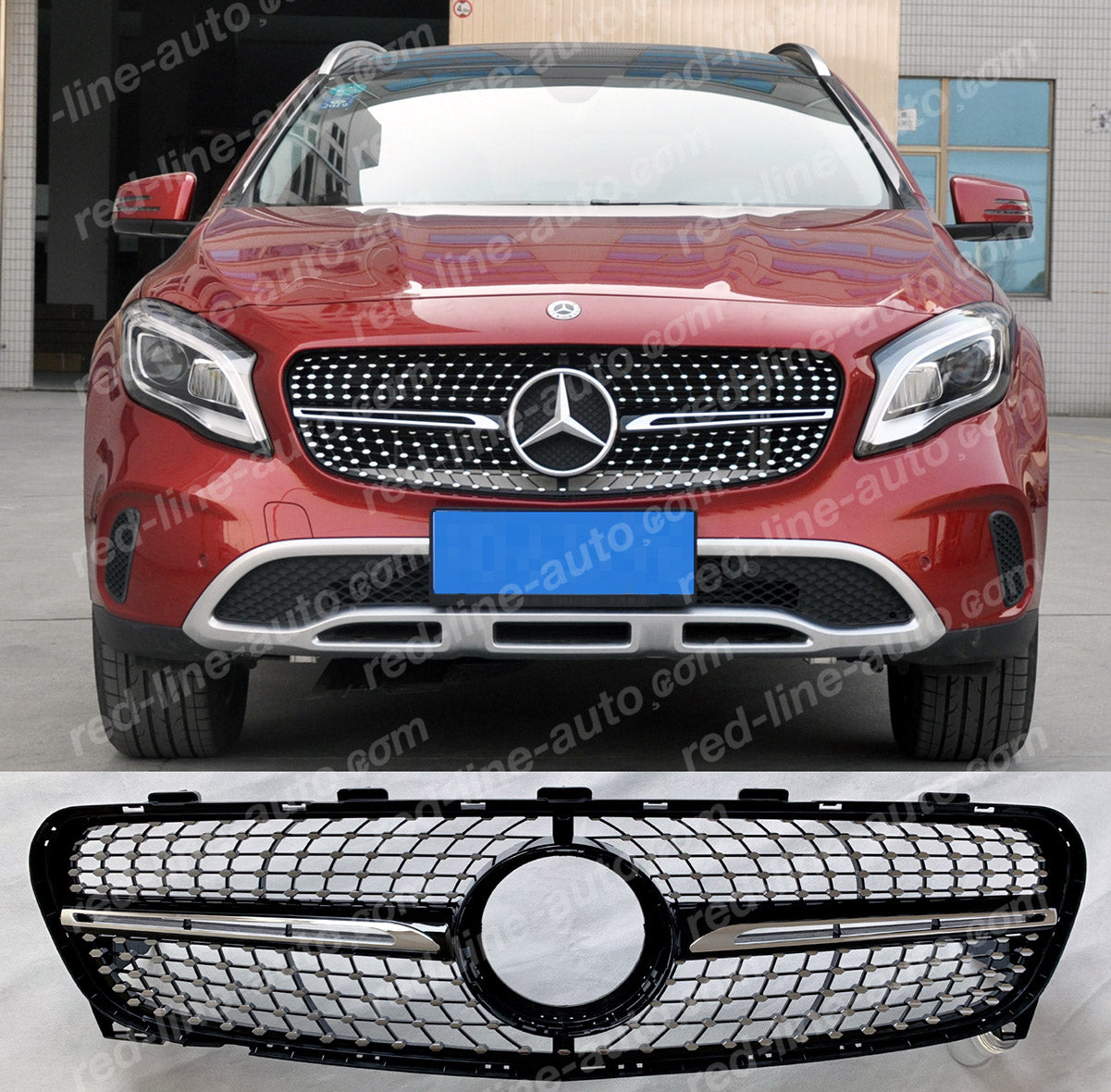 Facelift Mercedes X156 GLA SUV Black AMG Front Grille, Chrome Diamond GLA200 GLA180