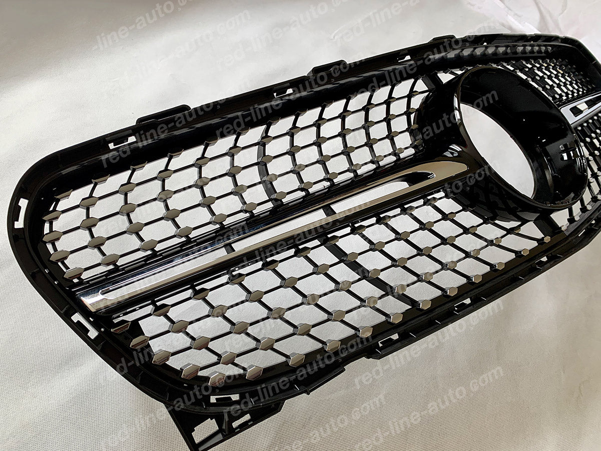 Aftermarket grilles manufactured at OEM standard, with top quality materials, precise design and light weight. A very cost-effective way to give your car a fresh lift to stand out on the road. This grille update is in line with AMG's newest design language: single horizontal fin with diamonds in chrome, it will subtle transform your car to provide a unique look without being crude.