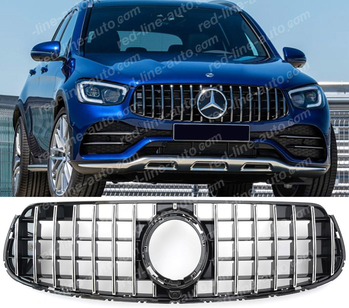 Facelift Mercedes X253 GLC SUV C253 Coupe Black AMG GT Front Grille, Chrome Panamericana Slat