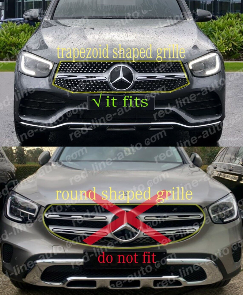 • Compatible models: For 2019-2023 Facelift Mercedes-Benz C253 GLC Coupe, X253 SUV with AMG bumper; NOT for base model with oval shaped grille; NOT for GLC63; Compatible with or without front camera and Distronic
