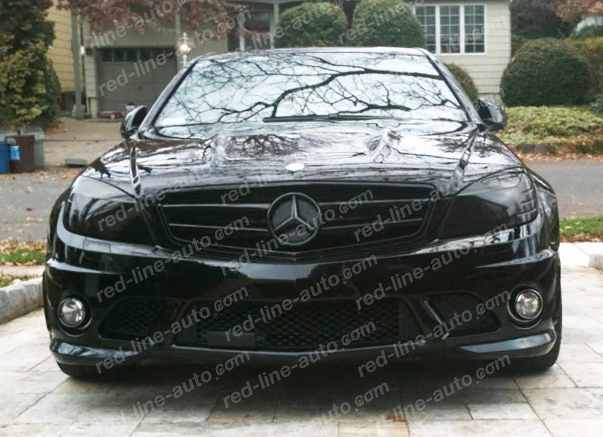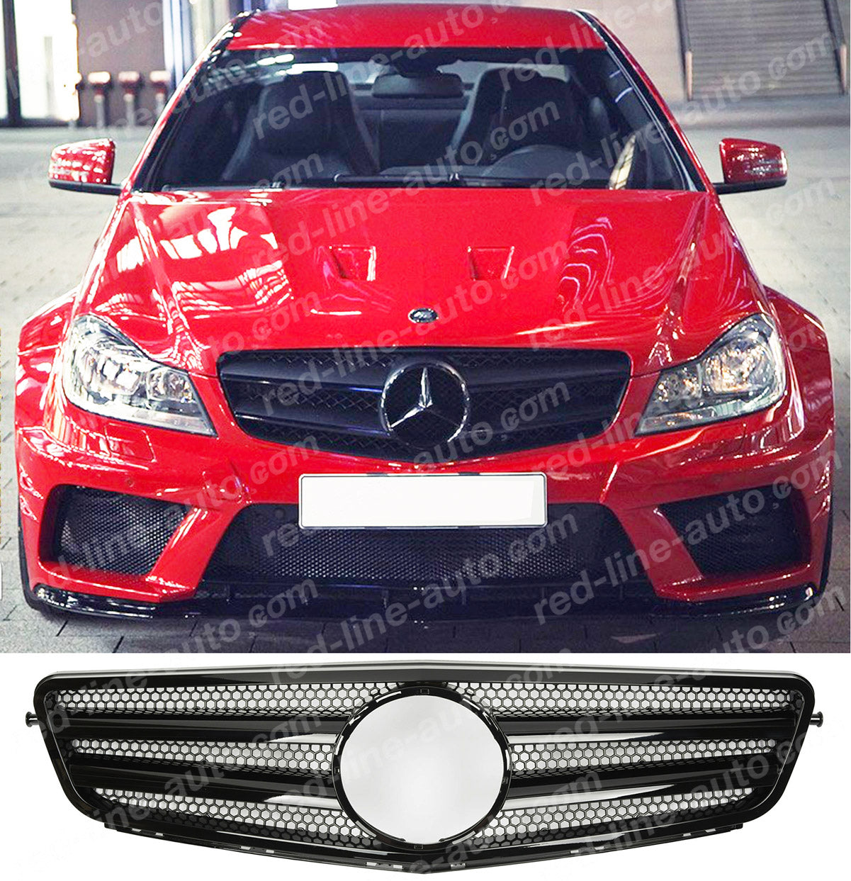 Mercedes W204 Saloon S204 Estate A204 Coupe Full Gloss Black Grille with Star, AMG C63 Blades