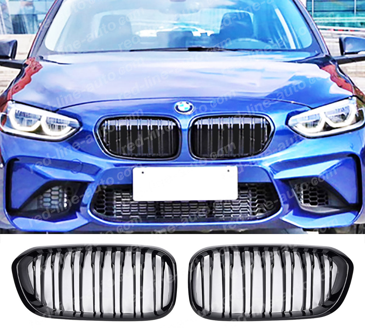 Facelift BMW 1 Series F20 F21 Hatchback Dual-Slat M-Performance M140i Grille, Full Gloss Black