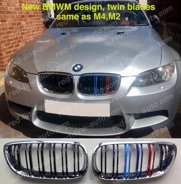 Pre-facelift BMW E92 Coupe E93 Convertible Black Twin-bar Grille, M-Power Tri-Color Chrome Rim