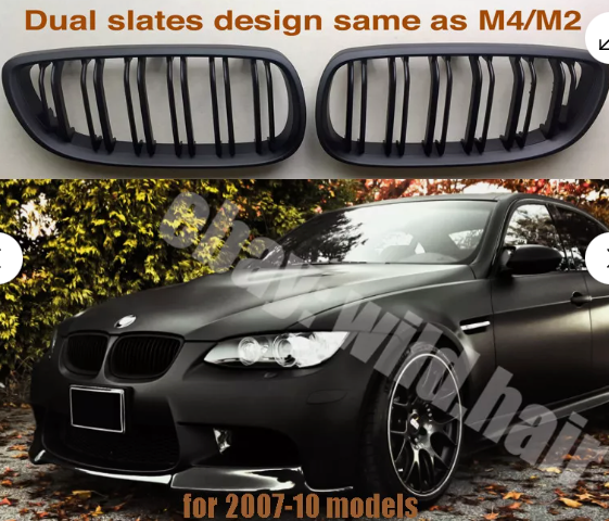 Pre-facelift BMW 3 Series E92 Coupe E93 Convertible M-Performance Grille, Full Matte Black Twin-slat