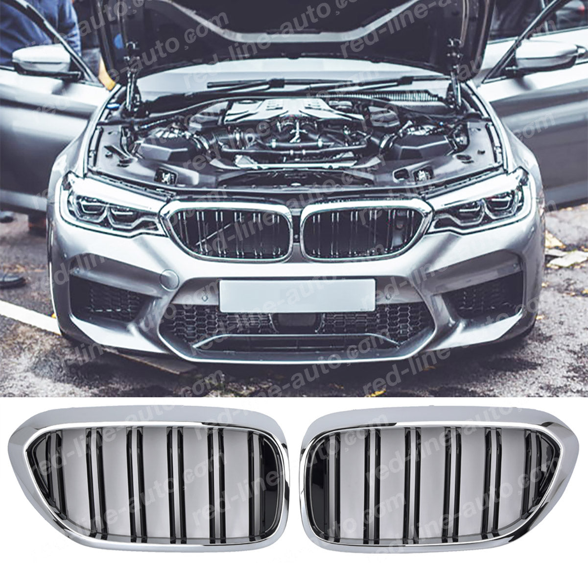 Pre-Facelift BMW G30 5 Series Saloon G31 Estate F90 M5 M-Power Black Grille, Twin-Bar Chrome Rim