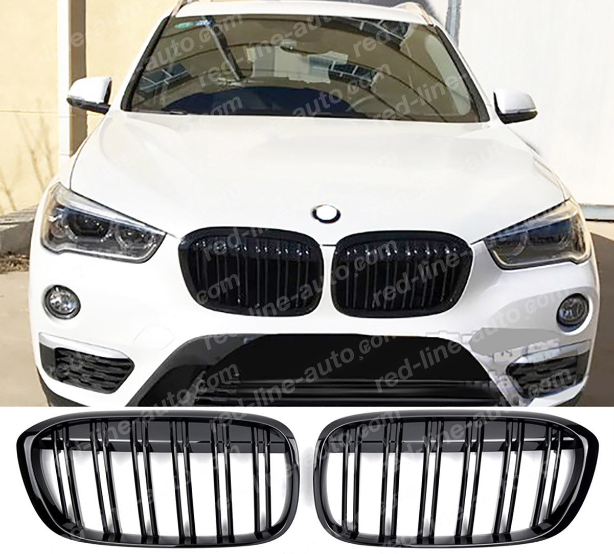 Pre-Facelift BMW X1 F48 SUV M-Performance Front Grille, Full Gloss Black Double-bar