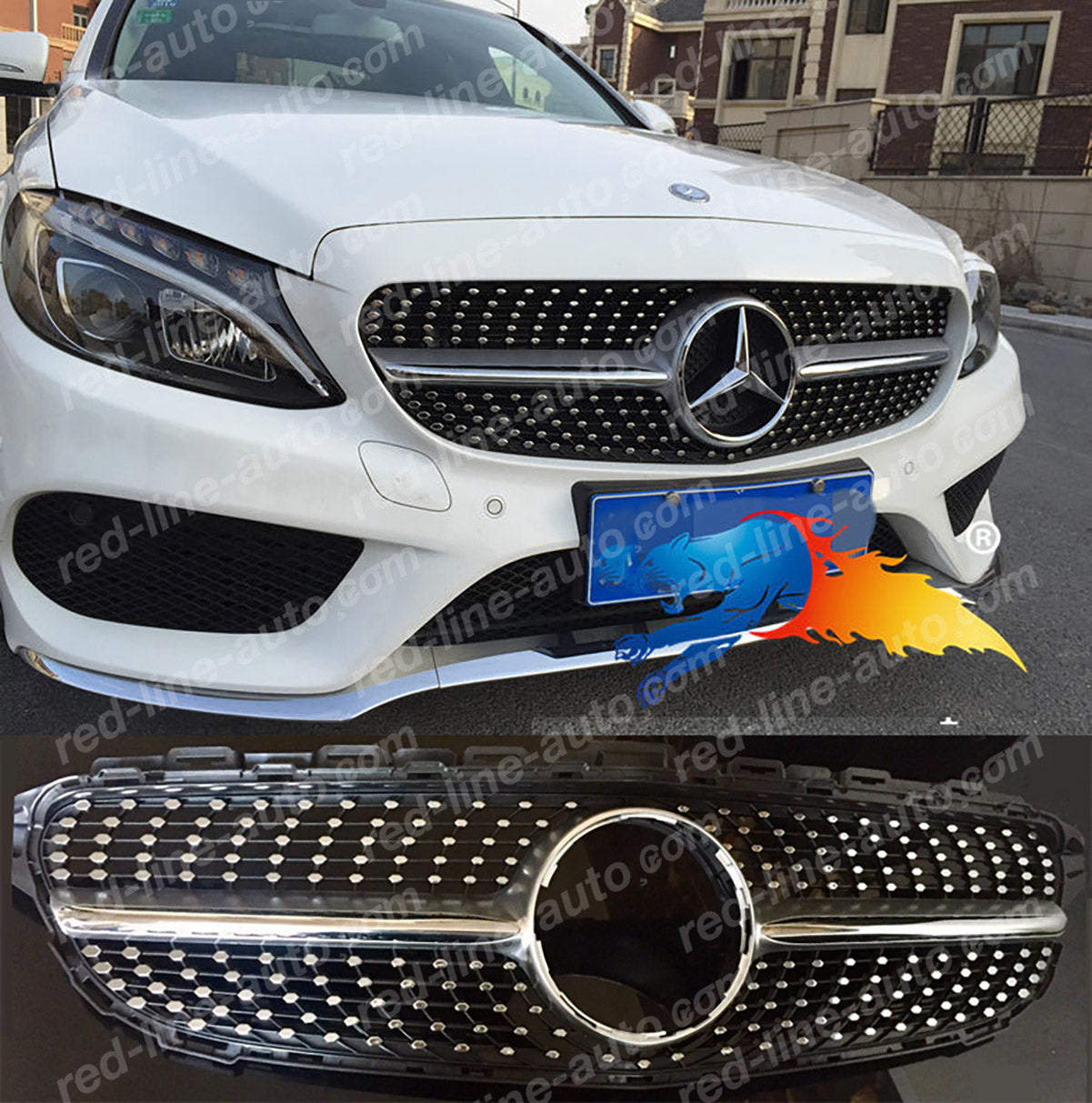 Pre-Facelift Mercedes W205 C-Class S205 C205 A205 Iridium Silver AMG Grille, Chrome Diamond No-Camera