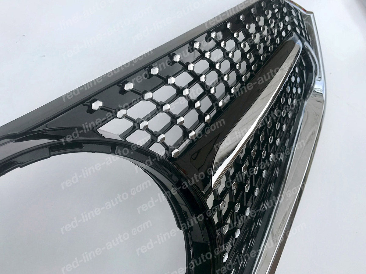 Aftermarket grilles manufactured at OEM standard, with top quality materials, precise design and light weight. A very cost-effective way to give your car a fresh lift to stand out on the road. This grille update is in line with AMG's newest design language: single horizontal fin with diamonds in chrome, it will subtle transform your car to provide a unique look without being crude.