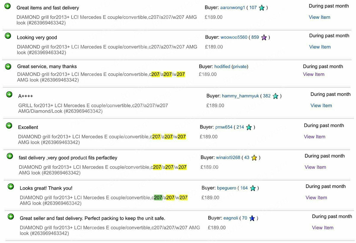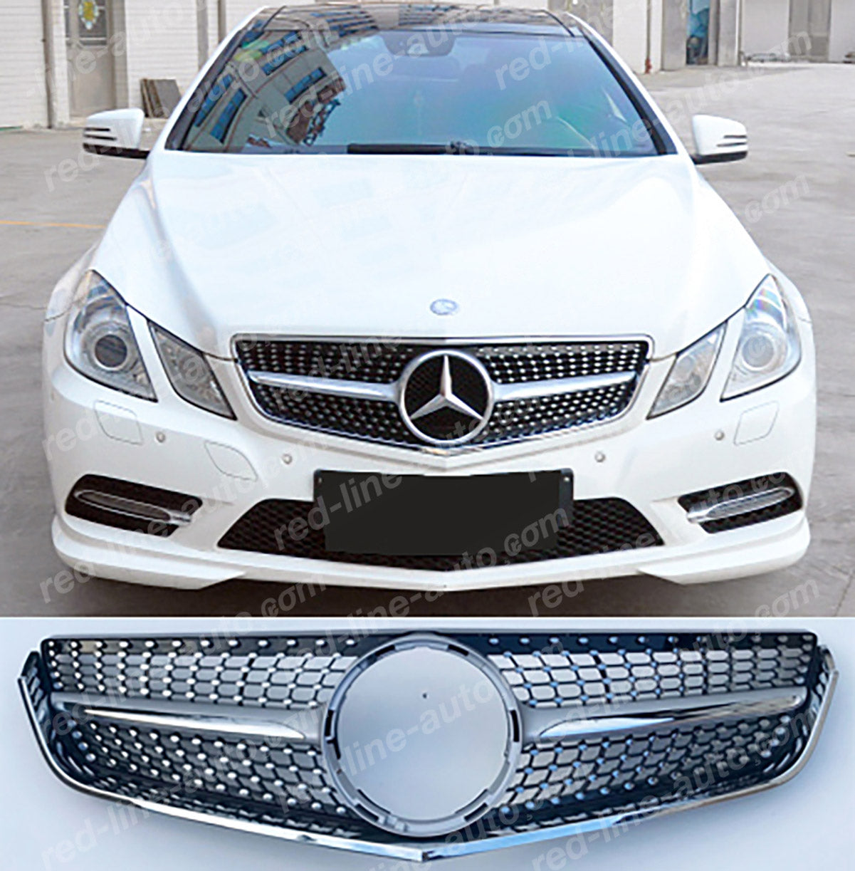 Pre-facelift Mercedes W207 E-Class Coupe C207 Convertible A207 AMG Diamond Front Grille, Iridium Silver