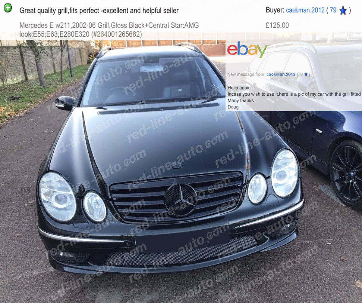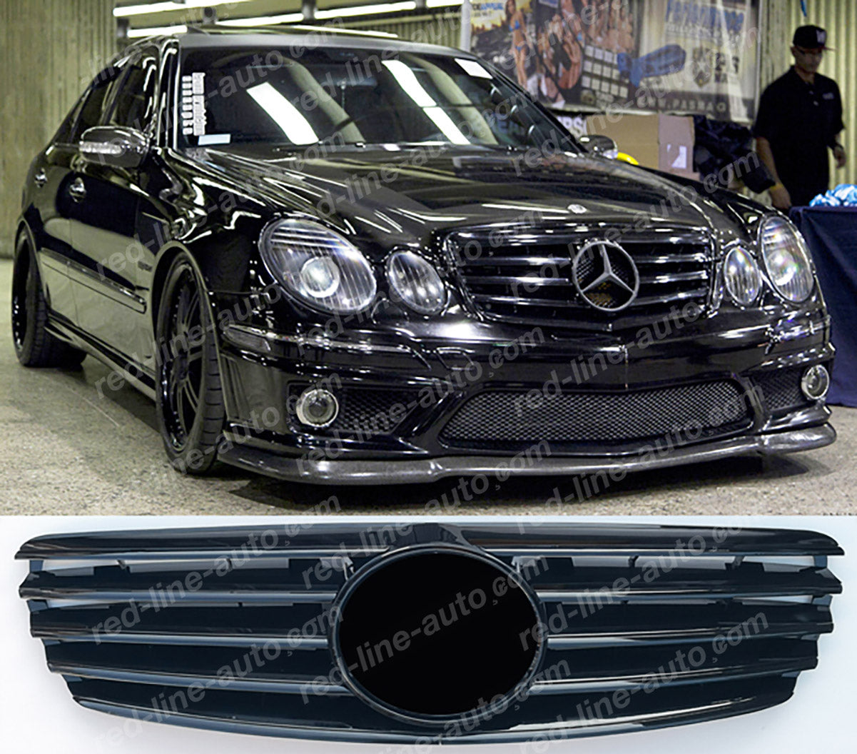 Pre-facelift Mercedes W211 E-Class Saloon S211 Estate AMG Sport Grille with Star, Full Gloss Black