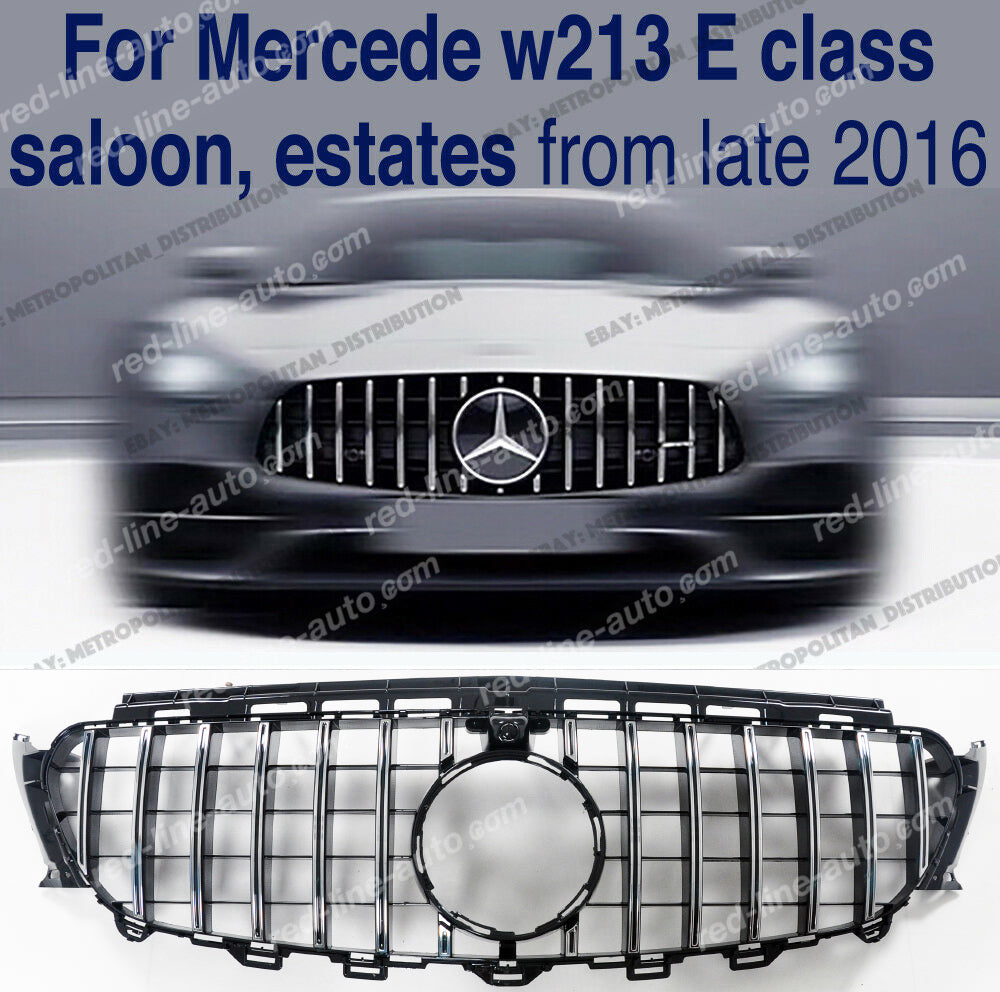 Pre-facelift Mercedes W213 E-Class Saloon S213 Estate E43 E53 AMG Black GT Grille, Chrome Panamericana