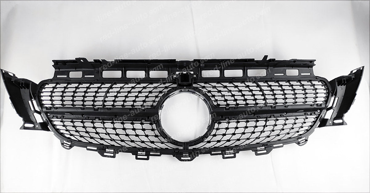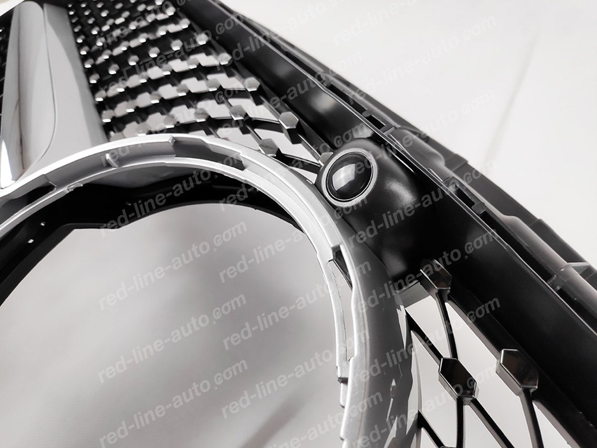 Aftermarket grilles manufactured at OEM standard, with top quality materials, precise design and light weight. A very cost-effective way to give your car a fresh lift to stand out on the road. This grille update is in line with AMG's newest design language: single horizontal fin with diamonds in chrome, it will subtle transform your car to provide a unique look without being crude.
