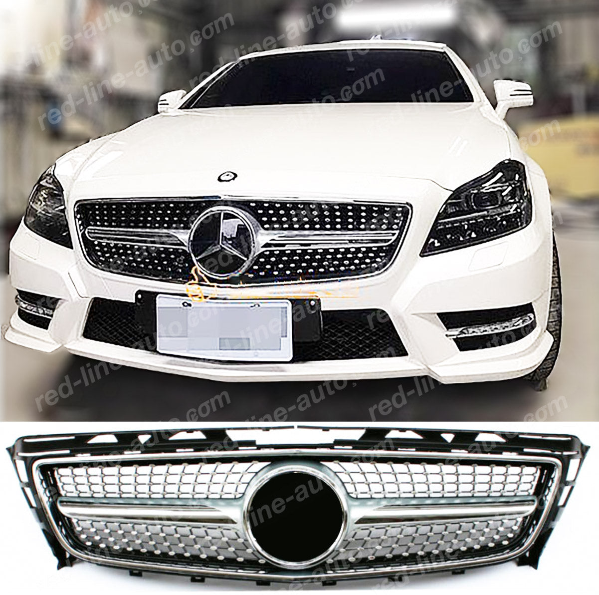 Pre-facelift Mercedes W218 CLS Coupe C218 Shooting Brake X218 Iridium Silver AMG Grille, Chrome Diamond