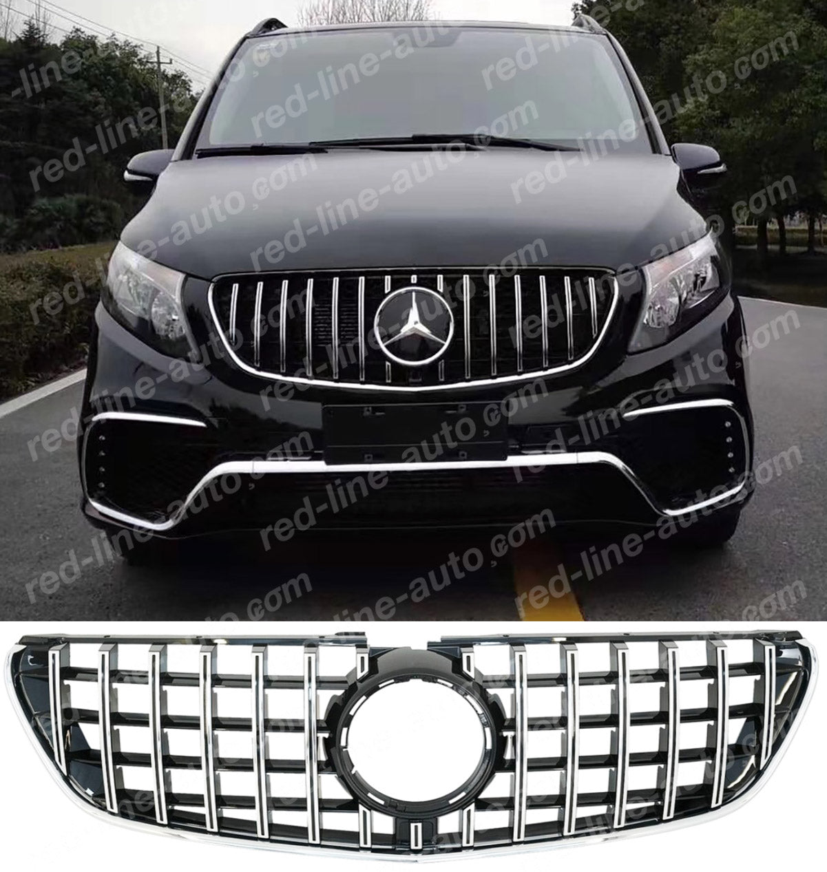 Pre-facelift Mercedes W447 V-Class MPV VIANO Black AMG GT Front Grille, Chrome Panamericana