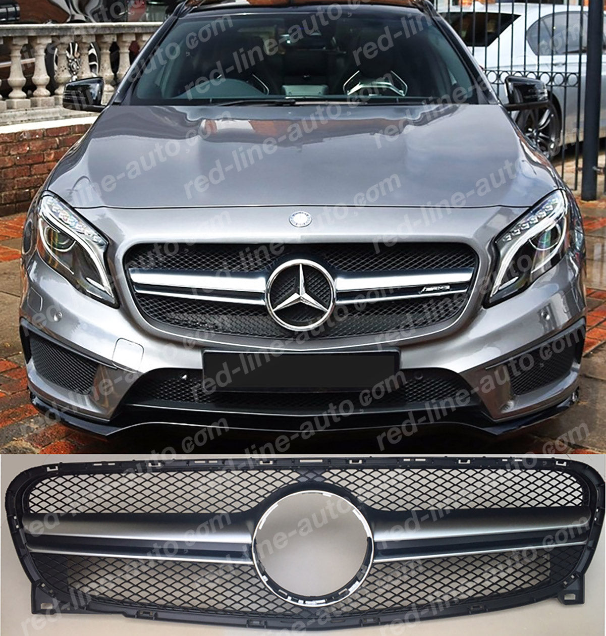 Pre-facelift Mercedes X156 GLA-Class SUV AMG GLA45 Black Front Grille, Chrome Single-fin