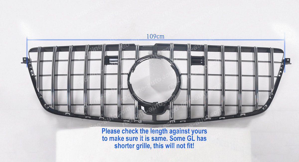Pre-facelift Mercedes X166 GL SUV AMG 63 Black GT Front Grille, Chrome Panamericana Slat