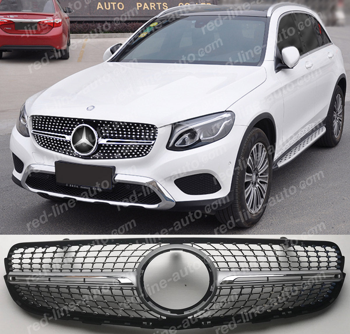 Pre-facelift Mercedes X253 GLC SUV C253 Coupe GLC43 Iridium Silver AMG Grille, Chrome Diamond